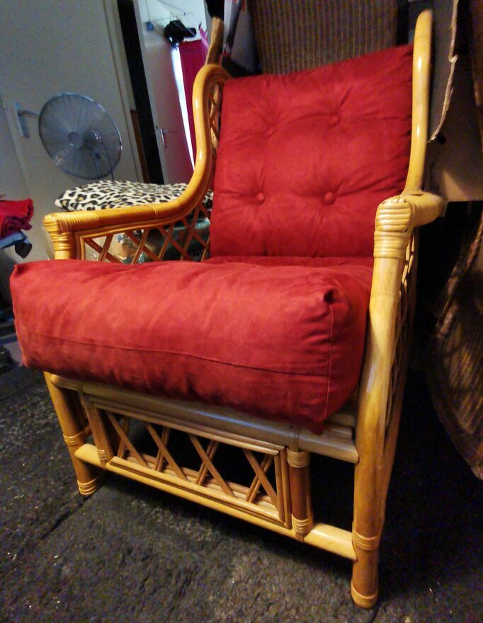 Duży piękny wygodny Fotel jasny RATTAN GrubePoduchy JAK NOWE