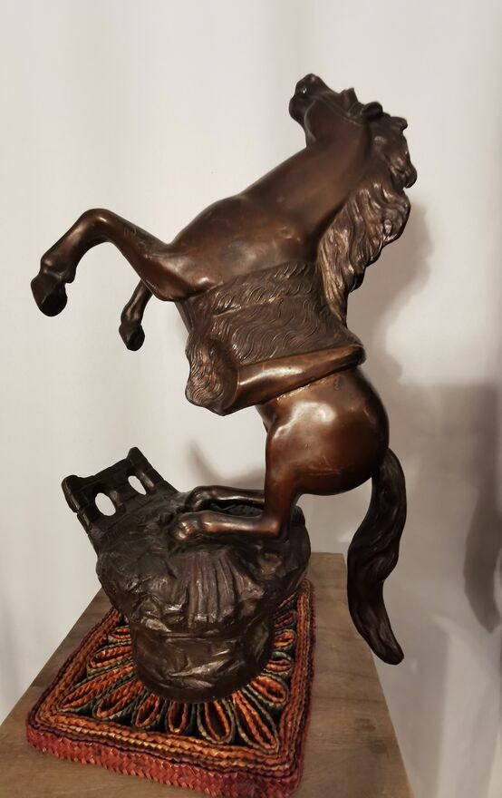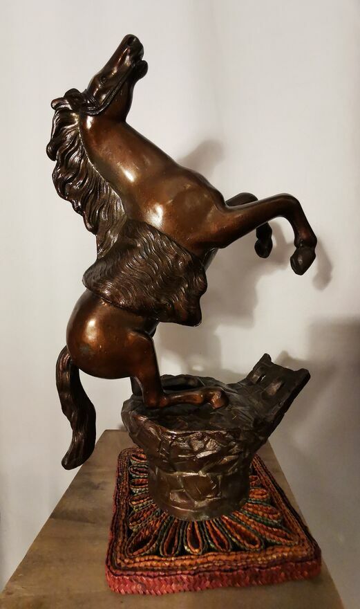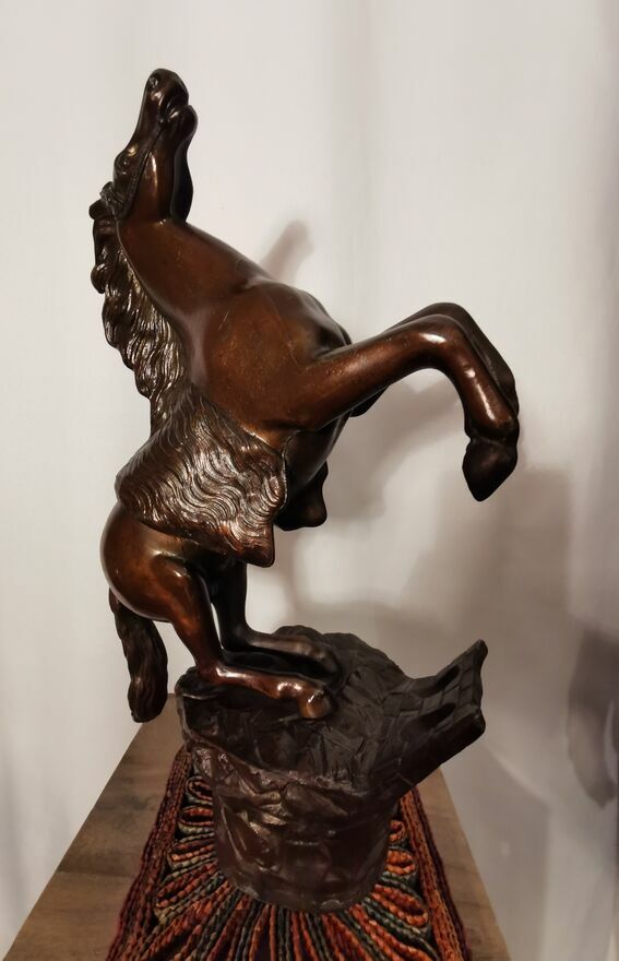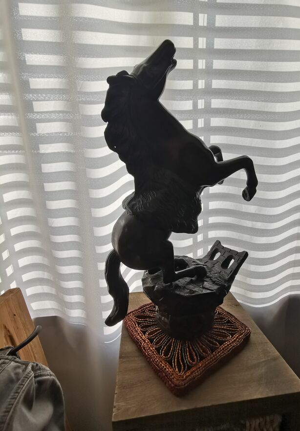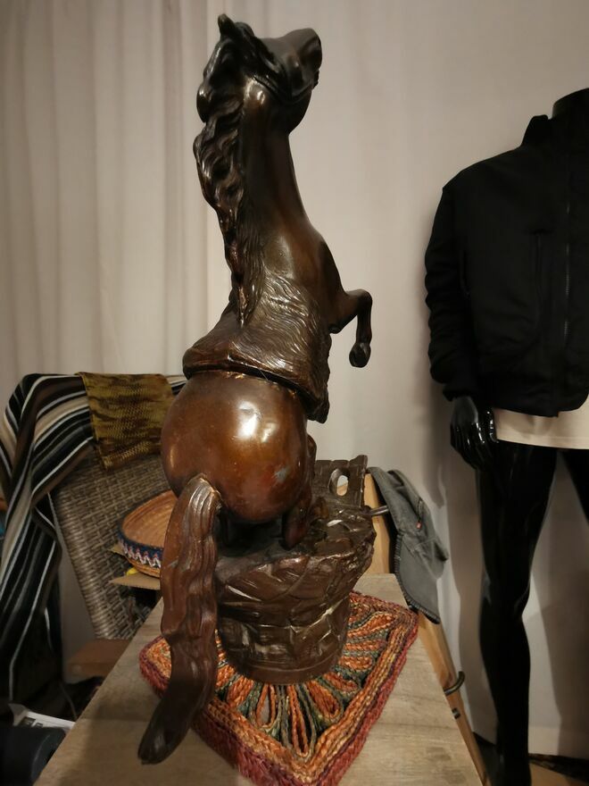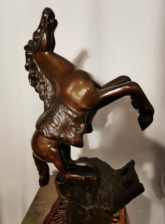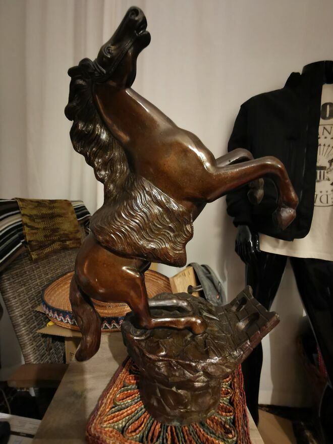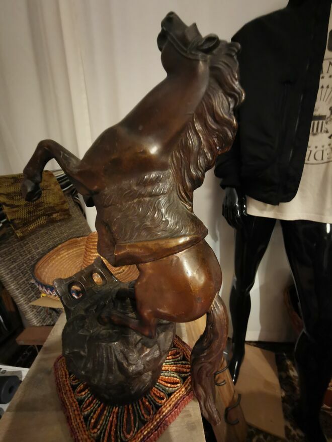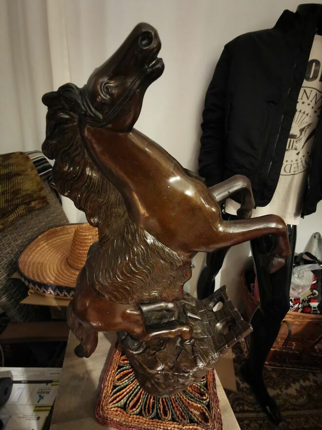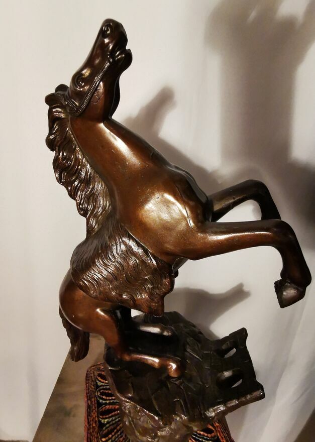 Sprzedam - w imponującym rozmiarze figurkę konia w galopie, konia '' stającego dęba" z wykończeniem z brązu. Jest to figurka pokryta brązem o wymiarach ma 44-45 cm wysokości a szeroka jest - w jej najszerszym miejscu na około 30cm. Waży około 5.3 kg. Stoi na solidnej podstawie w bardzo dobrej jakości. Z pewnością jest to prawdziwa atrakcja dla miłośnikow koni, może posłużyć jako piękna dekoracja i bardzo oryginalny prezent. Kupiłem tą figurkę w Europie zachodniej i trudno mi jest powiedzieć ile ta figurka dokładnie ma lat. Więcej informacji pod NR. TEL. podanym w moim ogłoszeniu i w razie pytań Proszę dzwonić po godz.12 stej, można też wysłać smsa lub wiadomość przez ten portal. Odbiór osobisty lub WYSYŁKA NA KOSZT KUPUJĄCEGO. ZOBACZ moje pozostałe ogłoszenia.Sprawdź zainteresowanie tym ogłoszeniem