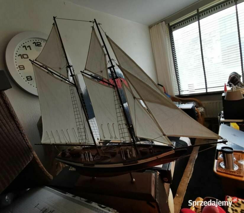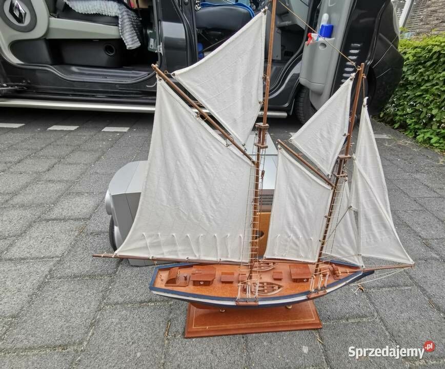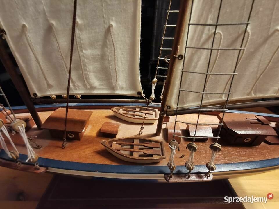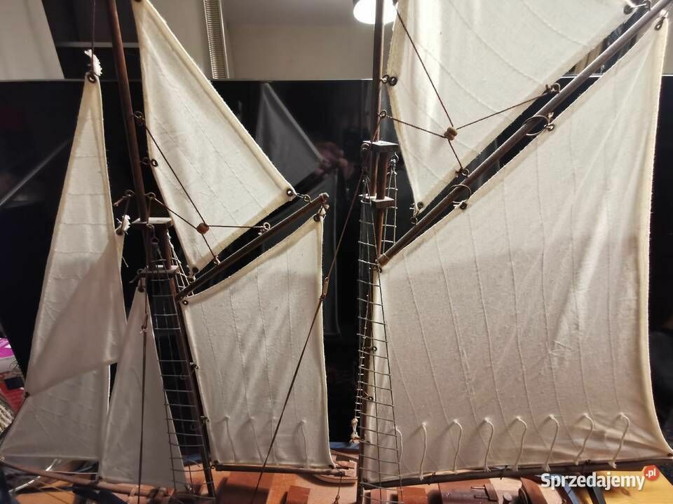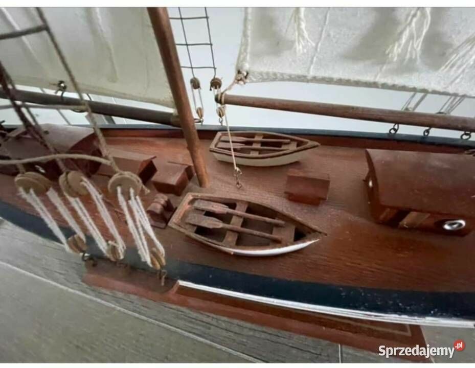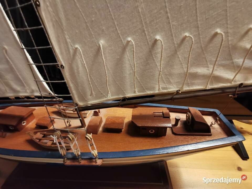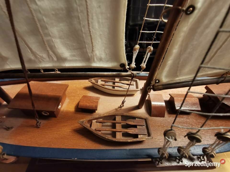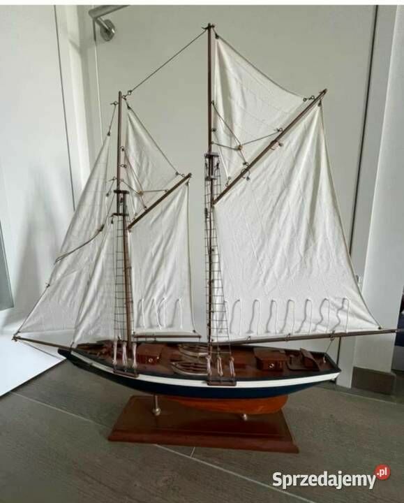 Sprzedam - wykonany z drewna bardzo ładny model jachtu - żaglówki - jest to piękny model żaglówki z dużą ilością detali o długości całkowitej około 84 cm i wysokości 76 cm. Model został wykonany ręcznie. Idealny jako dekoracja dla miłośnika żeglarstwa - marynistyki ale również bardzo fajny jako prezent. Nie udało mi się go ukryć za telewizorem 43 cali o przekątną ekranu 109 cm. Model został kupiony w Europie zachodniej. Wymiary jachtu to : Wysokość : 76 cm., Szerokość pokładu w jego najszerszym miejscu to : 14,5 cm., Długość jachtu to 84cm. Więcej informacji pod NR. TEL. podanym w moim ogłoszeniu i Proszę dzwonić po godz.12 stej, można też wysłać smsa lub wiadomość przez ten portal. Odbiór osobisty lub WYSYŁKA NA KOSZT KUPUJĄCEGO. ZOBACZ moje pozostałe ogłoszenia.Sprawdź zainteresowanie tym ogłoszeniem