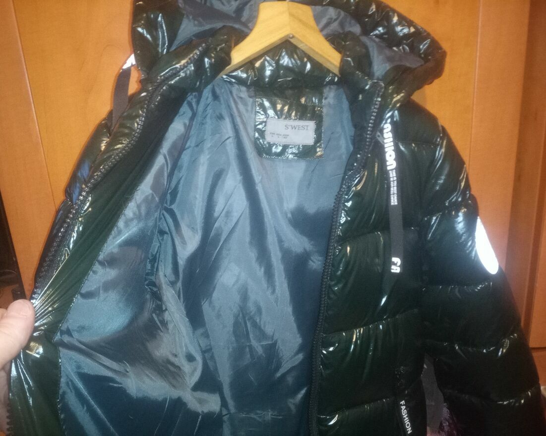 witam sprzedam nową kurtkę damską pikowaną z kapturem na zimę w kolorze butelkowej zieleni w rozmiarze M/L .Dodatkowe informacje: