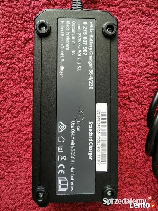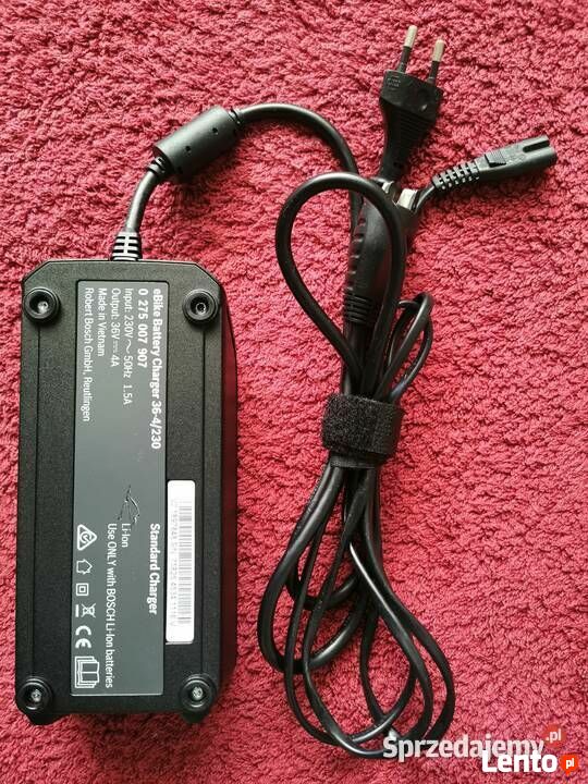 Sprzedam - Oryginalną ładowarkę BOSCH 4A - w jej oryginalnym opakowaniu do rowerów elektrycznych firmy Bosch, pasującą do silników Bosch Performance i Active line a w połączeniu z adapterem również do linii Classic. Ładowarkę Bosch Standard 4A można stosować zarówno do oryginalnych jak i kompatybilnych akumulatorów rowerowych Bosch dostępnych na rynku. Ta ładowarka jest najbardziej uniwersalna wśród ładowarek Bosch i waży 800 gramów. Więcej informacji pod NR. TEL. podanym w moim ogłoszeniu - można też wysłać smsa lub wiadomość przez ten portal. Odbiór osobisty lub WYSYŁKA NA KOSZT KUPUJĄCEGO.ZOBACZ moje pozostałe ogłoszenia.