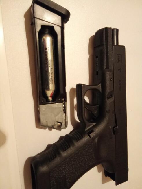 Do sprzedania replika Glock,metalowy,nabijany gazem CO2, wystrzał metalowe kulki,w kpl.kabura, pojemniki z gazem CO2,kulki , ...